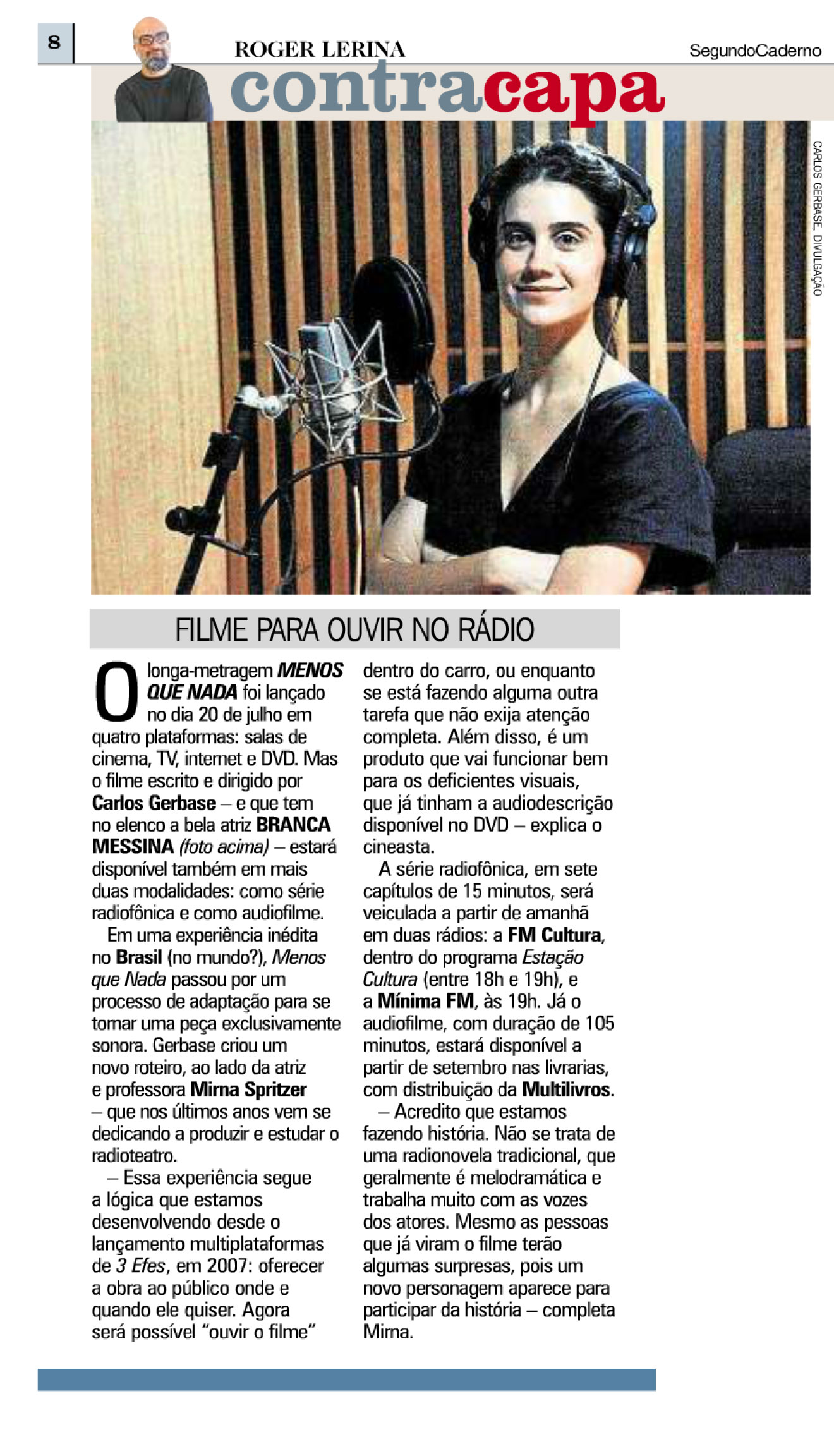 O longa dirigido por Carlos Gerbase foi transformado em série radiofônica, por Carlos e Gerbase e Mirna Spritzer. A série de 15 capítulos estreia hoje na FM Cultura e Mínima. O projeto foi destaque na Contracapa de hoje: