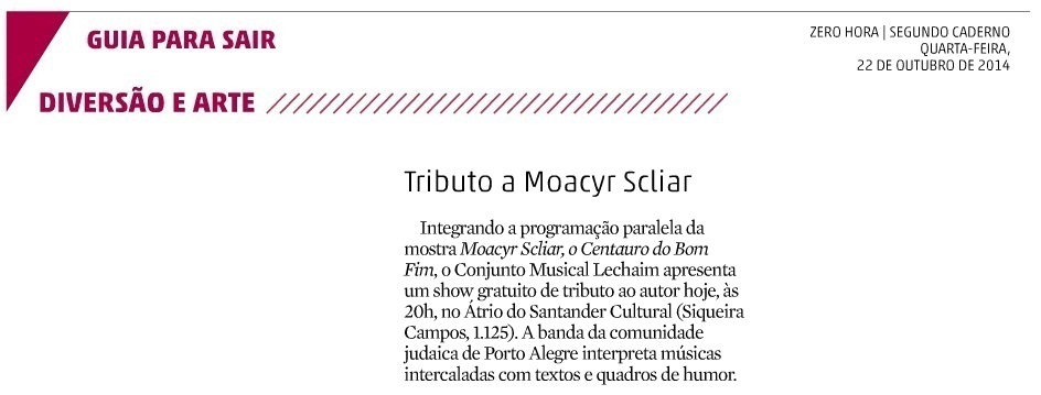 - Seminário Território da Emoção: A Trajetória Médica de Moacyr Scliar reúne médicos gaúchos no dia 28 de outubro