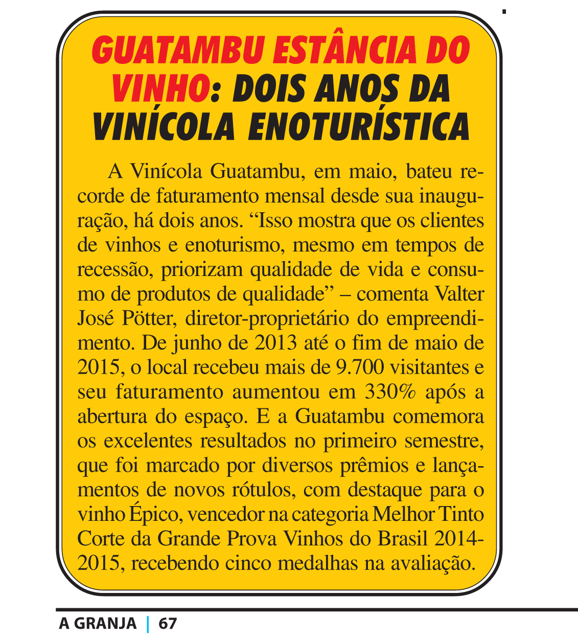 Guatambu nas revistas Prazeres da Mesa e A Granja