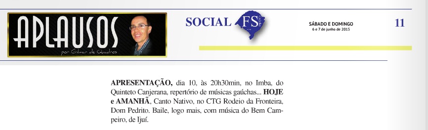 Quinteto Canjerana na Folha do Sul de hoje