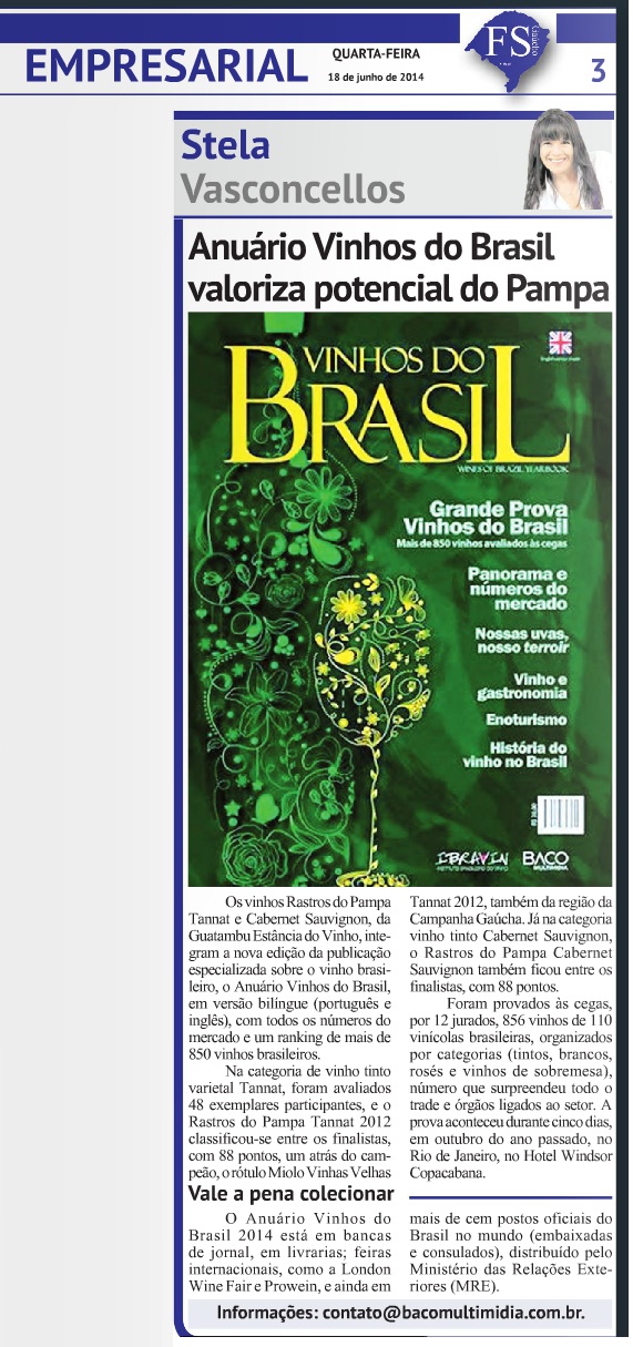 Em abril, o vinho Rastros do Pampa Cabernet Sauvignon 2012 e o espumante Guatambu Brut Rosé receberam medalha de prata no VII Concurso Internacional de Vinhos do Brasil. No mesmo mês, o Tannat foi o destaque entre os tintos brasileiros na ExpoVinis 2014.