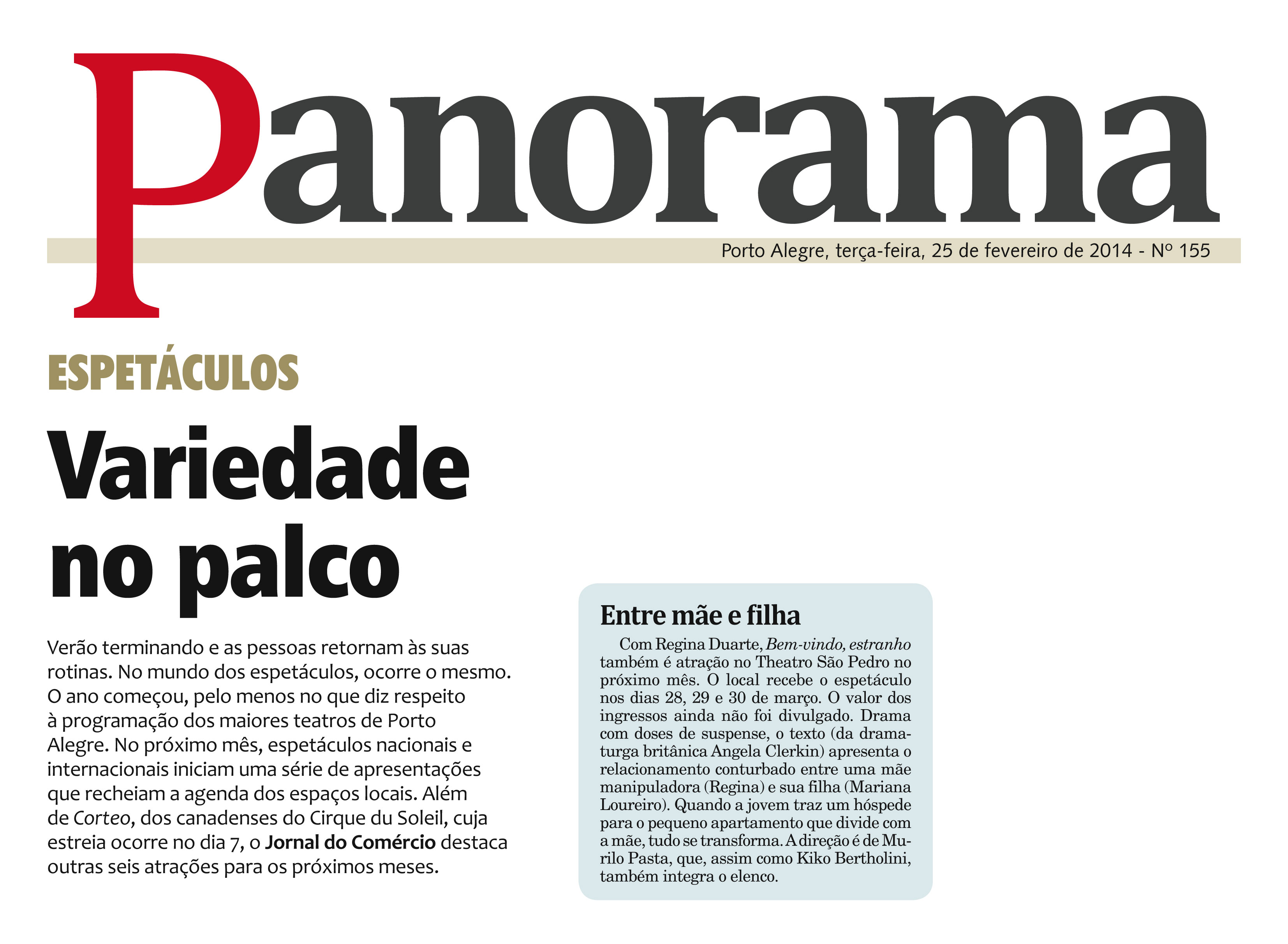 Jaki (Regina Duarte) e sua filha Elaine (Mariana Loureiro), vivem às turras num claustrofóbico apartamento em Londres. Com a chegada de Joseph (Kiko Bertholini), o misterioso namorado de Elaine, a atmosfera de suspense entra em erupção num conflito de desejos incontroláveis cujas consequências são devastadoras. (80 min / 14 anos) – Theatro São Pedro – Porto Alegre – Sex, Sab e Dom, 28, 29 e 30 de março.