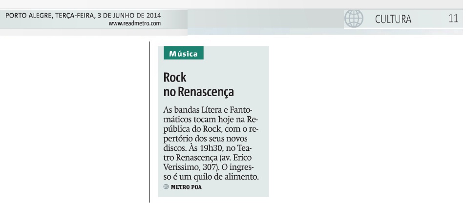 O grupo se apresenta ao vivo no dia 03 de junho, às 19h30, no Teatro Renascença, onde dividem a noite com a banda Lítera, integrando o evento República do Rock, organizado pela Prefeitura. No dia 20 de junho, a banda segue para São Paulo, com show no Sesc Vila Mariana. O ingresso para o show do dia 03 é um quilo de alimento não perecível. A troca de alimentos por ingressos inicia às 18h30 na bilheteria do teatro.
