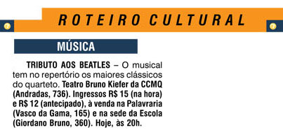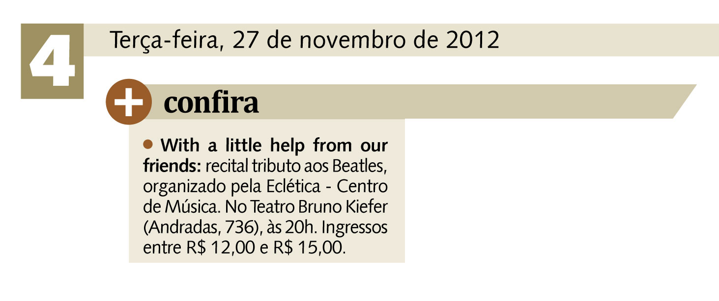 Recital-tributo aos Beatles ocorre no dia 27 de novembro