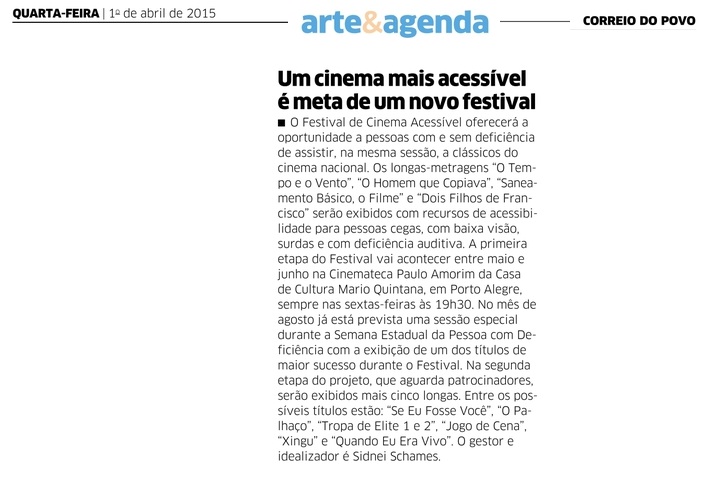 Casa de Cinema de Porto Alegre no Correio do Povo de hoje