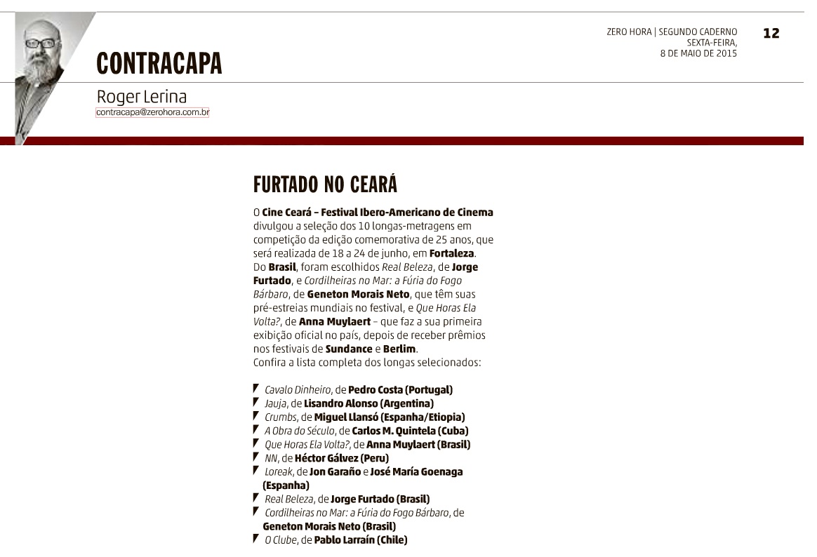 Filmes da Casa de Cinema de Porto Alegre no Correio do Povo de hoje