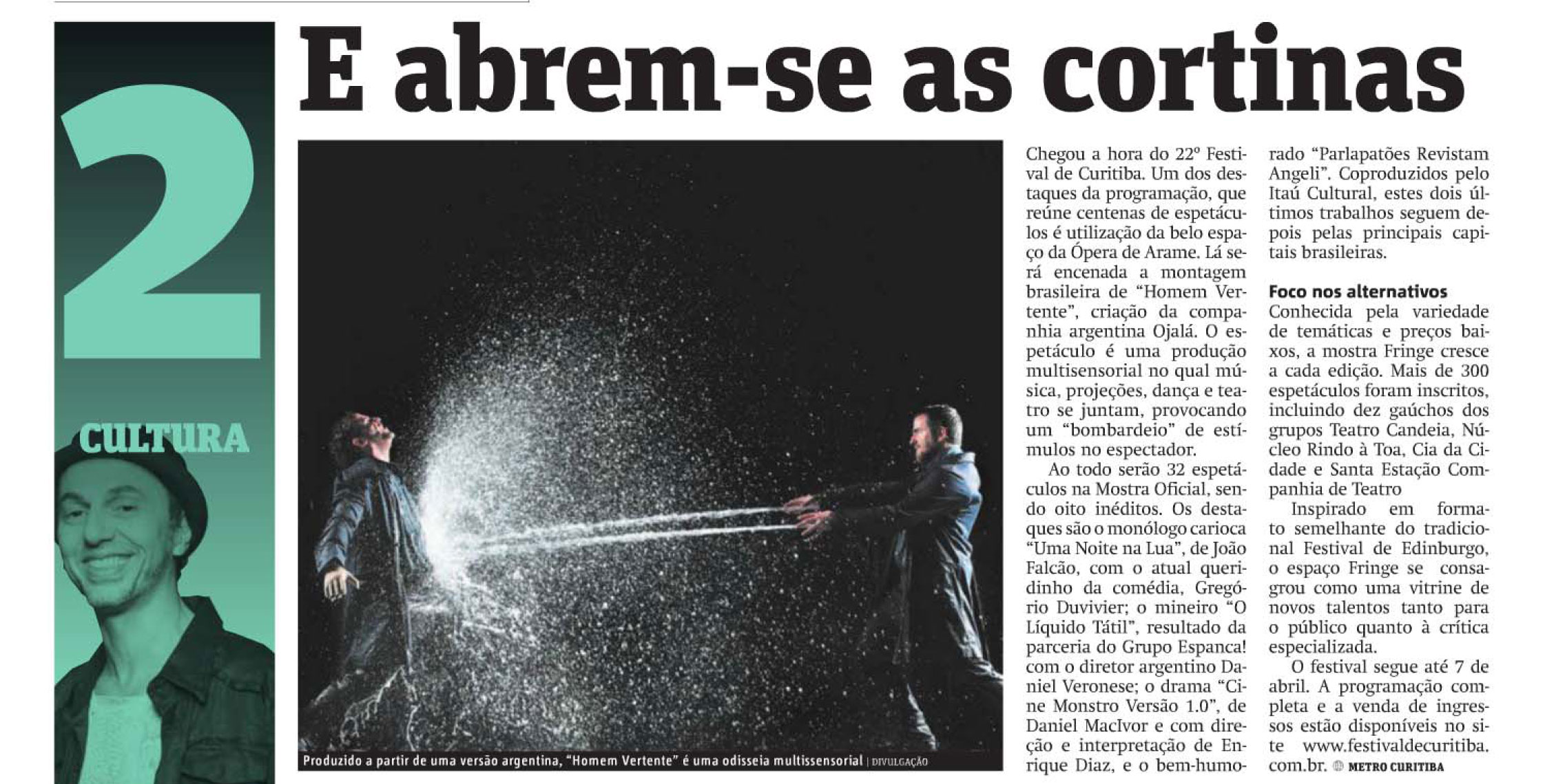 A montagem estreou em Porto Alegre, sede da companhia, em outubro de 2010. A caravana contempla 10 apresentações gratuitas nas quatro cidades, além de uma Oficina de Dramaturgia com Diones Camargo, dramaturgo do espetáculo. Em Curitiba, Camargo ministra o Workshop Dramaturgia Líquida – Assimilação de Influências no Texto Teatral. Voltada a estudantes de teatro, escritores e público em geral, a atividade aborda os diferentes métodos de criação dramatúrgica, desde a escrita de cenas até a sua transposição para o palco. A partir de alguns exercícios de escrita e composição cênica serão comentados os principais elementos que estruturam e movem uma narrativa, proporcionando uma vivência do processo criativo comum a um autor de peças teatrais. Os encontros acontecem nos dias 05 e 06 de abril, das 14h às 18h, no Espaço Cênico. As inscrições são gratuitas através do email divulgapalcoaberto@gmail.com, enviando breve currículo e carta de intenção até 31 de março.