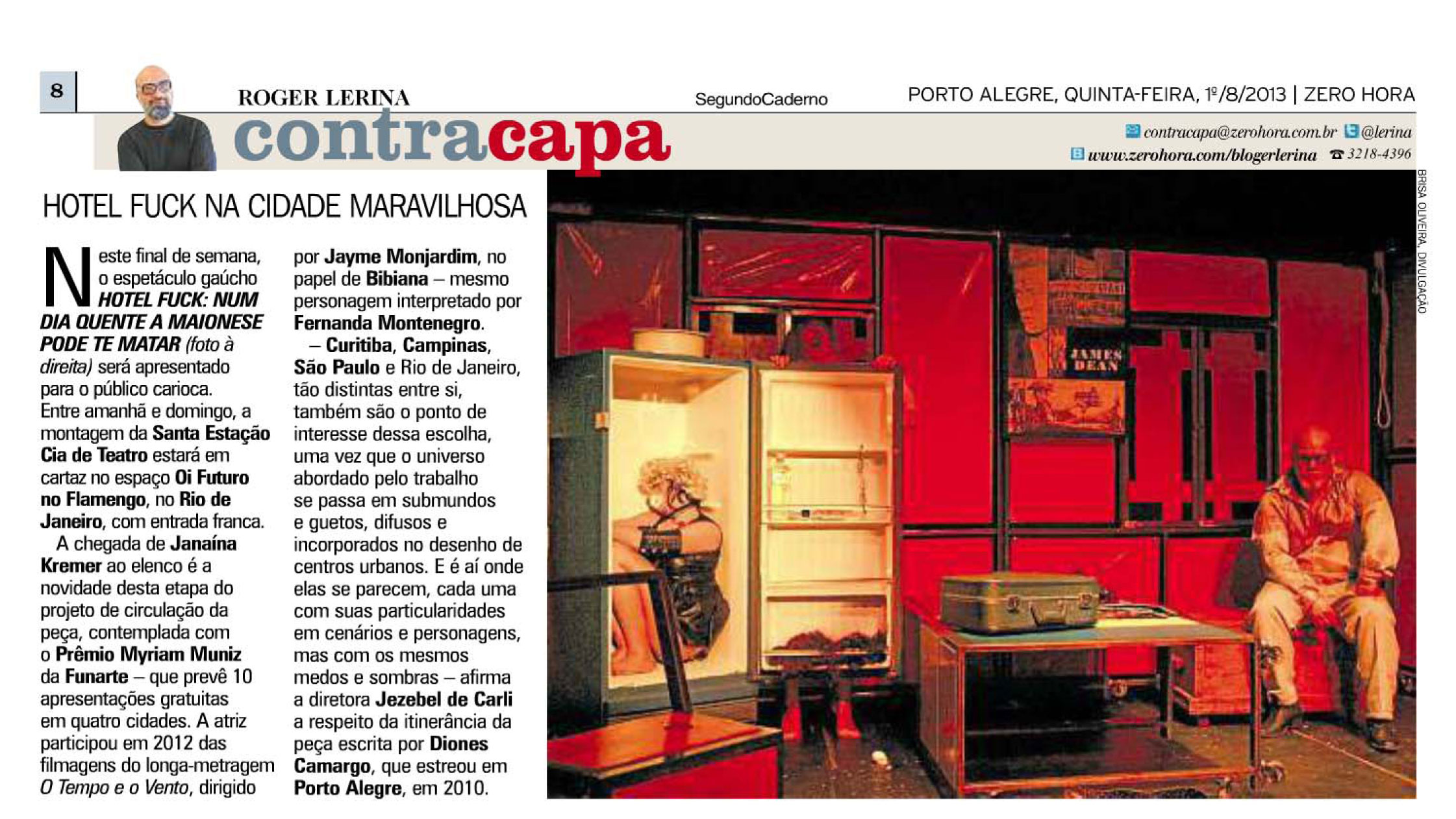 Inicia no dia 14 de julho a caravana de circulação do espetáculo Hotel Fuck: num dia quente a maionese pode te matar, da Santa Estação Cia de Teatro, em Curitiba, Campinas, São Paulo e Rio de Janeiro. O projeto foi contemplado com o Prêmio Myriam Muniz de circulação da Funarte.