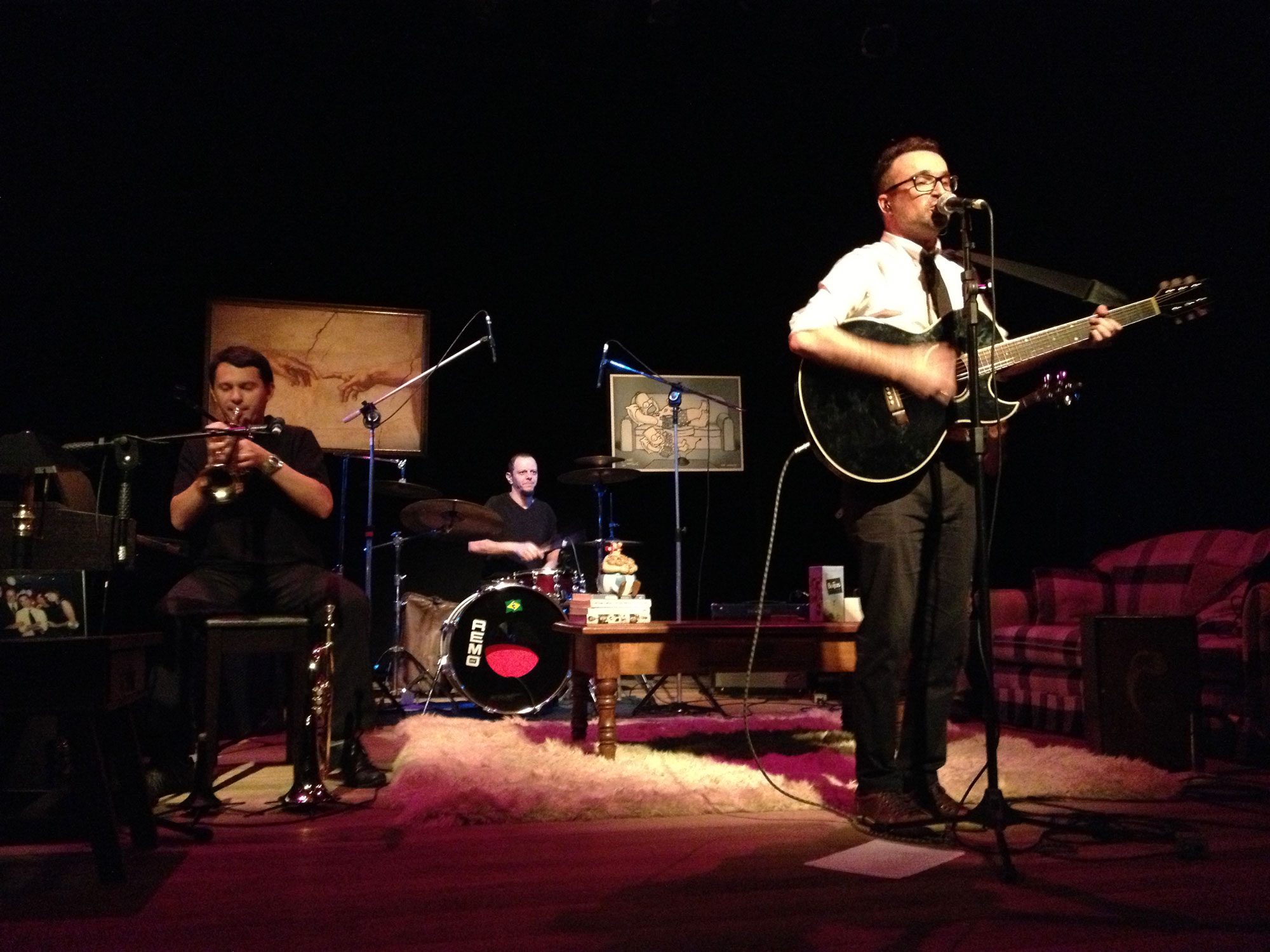 A Banda de Apartamento que acompanha Edu Conte é formada por João Rocha (Baixo), Leandro Aragão (Bateria) e Renato Dall Ago (Piano e Trompete).