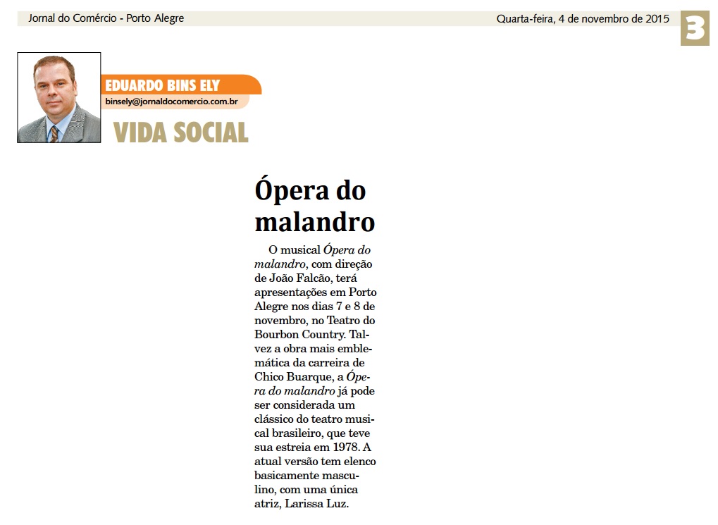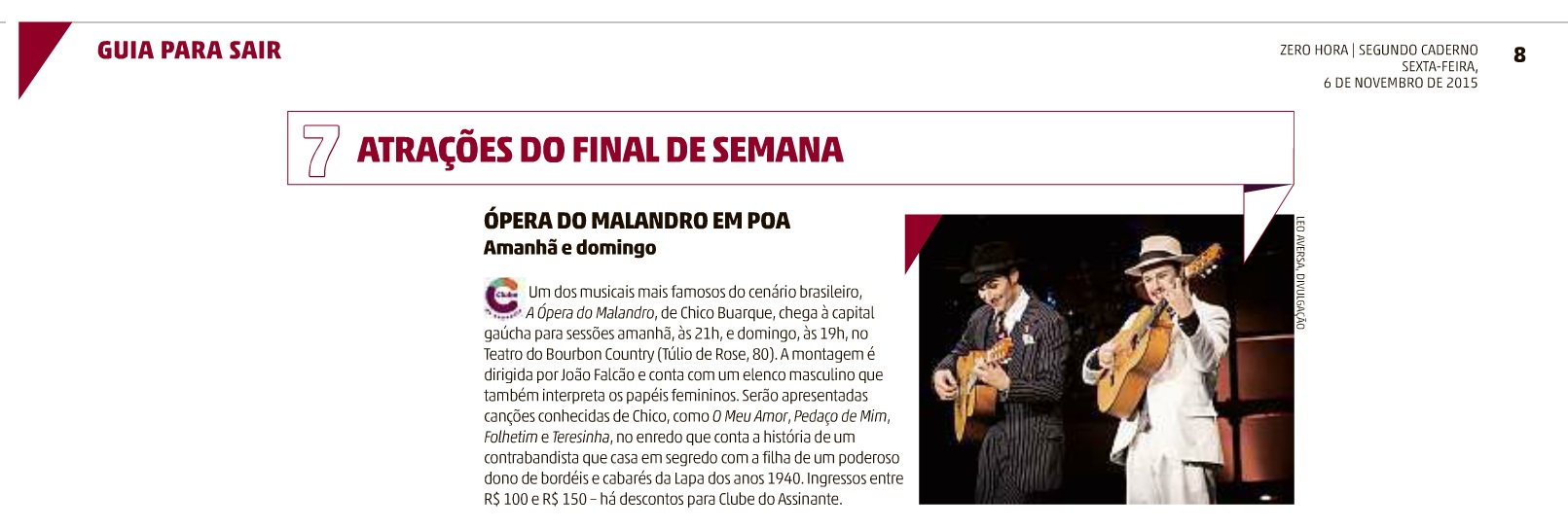Espetáculo “Rio Mais Brasil, o nosso musical” em Zero Hora do fim de semana