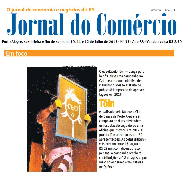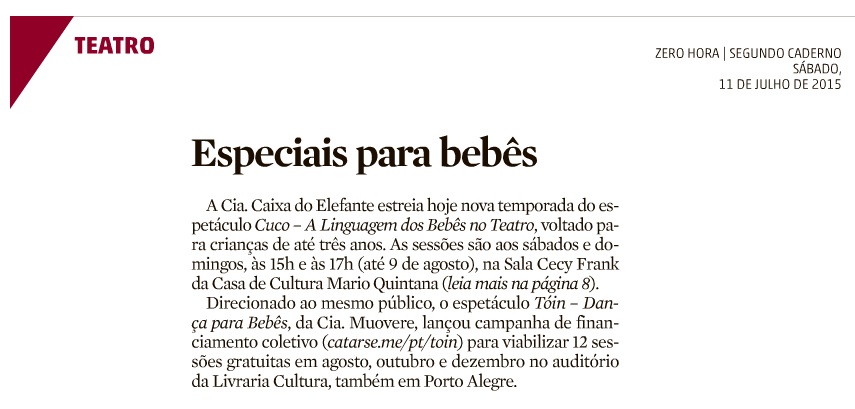 No sábado e domingo 08 e 09 de fevereiro, às 20h, a Muovere Cia de Dança, através do seu projeto Tóin Dancinfância, promove sessões do espetáculo Tóin – Dança para Bebês na Casa de Espetáculos, integrando a programação do Porto Verão Alegre.