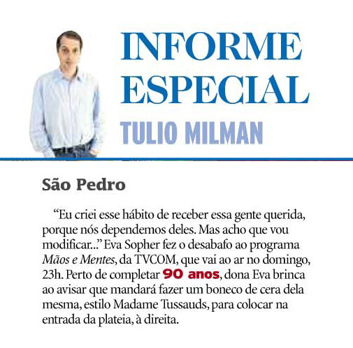 Espetáculo “Pois é, Vizinha…” na coluna Informe Especial de Tulio Milman em Zero Hora de hoje