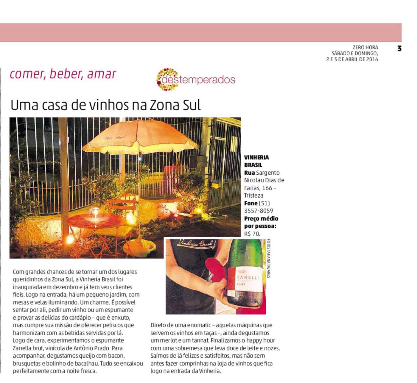 Aberta ao público em dezembro de 2015, a Vinheria Brasil é uma loja de vinhos e wine bar, localizada no bairro Tristeza, em Porto Alegre que trabalha majoritariamente com rótulos brasileiros, de vinícolas boutique.